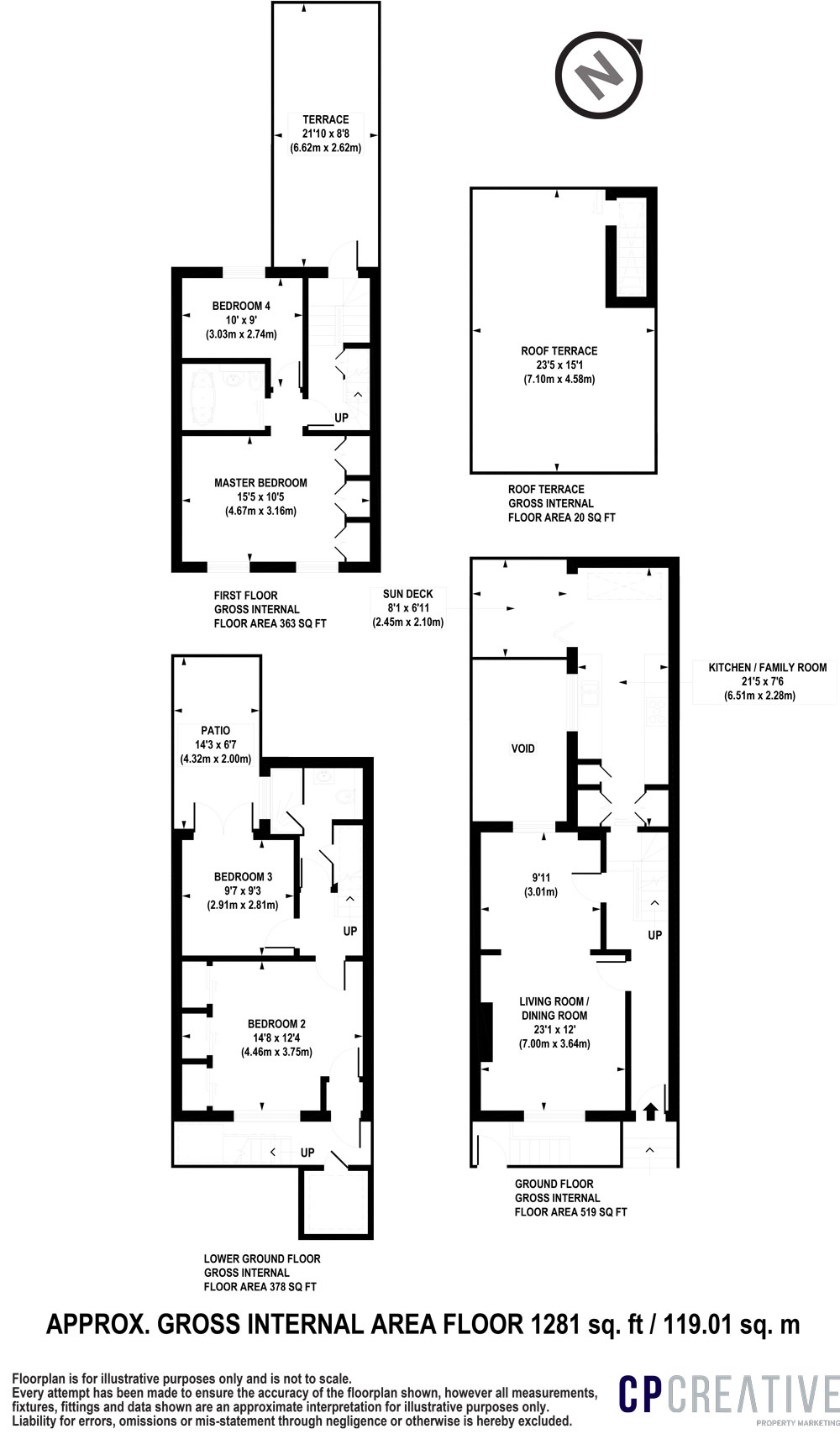 A truly stunning light bright end of terrace 3 storey Victorian house (1281sq ft/119.01m²) having been skilfully designed with a thoughtful blend of modern interior whilst carefully retaining original Victorian features. The property benefits from a terrace at each level with wonderful panoramic views towards BT Tower & over Primrose Hill Studios.